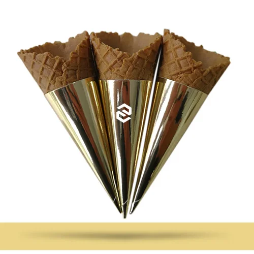 The customers can immediately notice the difference. Your cones are better looking, tougher, and safer to eat. Like printed cone sleeves, foil versions carry logos and colors, but with added shine and durability. That makes every serving a small but powerful brand statement