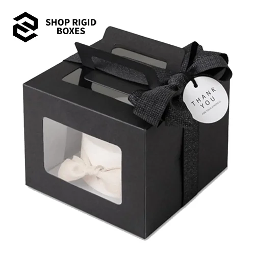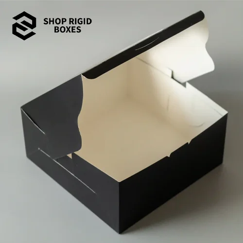 Shop Rigid Boxes provides ultimate Black Cake Box as affordable and professional packaging solutions for your product. These boxes are of sophisticated and strong construction and have an attractive finish to them. Especially suitable for jewelry, gifts and other kinds of accessories, including costumes, they can be lacquered with your logo, colors and some designs. Using friendly environmental material, these boxes are unique and will appeal to environmentally conscious clients. If you have not yet personalized your packaging now is the time to do so and don’t miss out on our limited-time deals. Stand out with premier, sustainable Black Cake Box that puts your products in a league of their own. Book your order now!