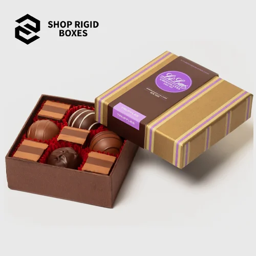 One of the most pleasant gestures to make is to gift chocolates to show love and concern for the perfect occasion. The fancy and catchy packaging of our chocolate gift boxes leaves your customers highly satisfied with your package. Furthermore, you can customize these chocolate truffle boxes to your unique requirements. Our luxury chocolate packaging is one of our specialties. We assist brands in designing their own identities in a manner that impresses customers and earns their trust. There are also options of adding custom inserts, dividers, and compartments to add a bit more elegance and security. Need to enhance the luxury feel with ribbons, bows, or windows? We offer that too. Our boxes act as a complete marketing tool to promote your brand and build a strong customer base. Get these chocolate packaging boxes in bulk now!