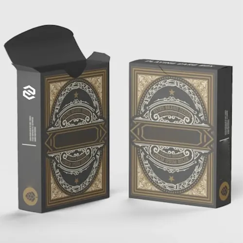 Who doesn't love playing cards with their favorite people? However, we offer custom playing card boxes to ensure durability during extended play sessions. Our luxury playing card boxes are crafted with the finest quality materials, available in rigid boxes or cardboard and in various color schemes. What's even more exciting is that you can now enjoy your favorite movies with our themed playing card rigid boxes. Our custom playing card packaging features accents of royal gold, adding an elegant touch that complements any color scheme. Whether it's UNO, Exploding Kittens, or any other deck, our custom playing card packaging fulfills the protection needs and any damage. Enjoy winning and having fun with our playing card gift boxes. Contact us to learn more about our playing card boxes!