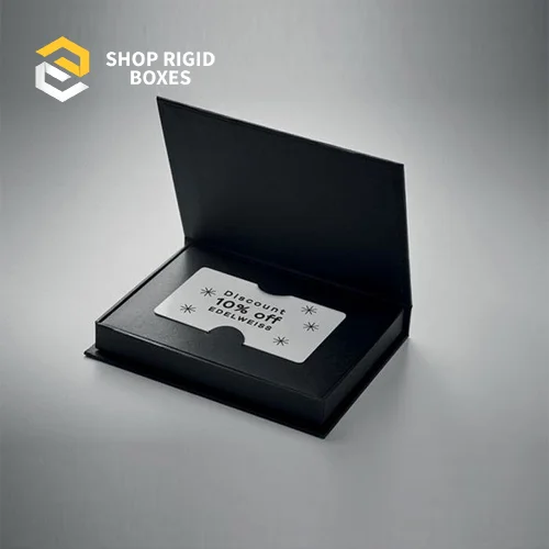 Gift card packaging improves on the appearance of your gift cards, and makes the end product appear more thoughtful. Shop Rigid Boxes is a professional custom gift card packaging service that will help you create a unique look for your company. When using printed gift card packaging one can adapt logos, patterns, or messages that help make an impact. Due to our product quality our packaging is long-lasting as well as classy allowing your gift cards to pop in any retail or occasion. Available in all popular styles and can be ordered in most any surface type. Book your order now!