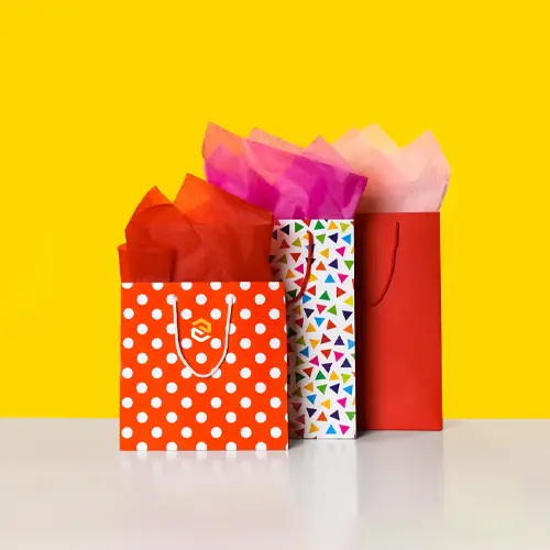 Wrap any present your gift by using our high-quality paper gift bags. These bags are extremely strong, sustainable and easy to carry because no additional wrapping is necessary. Custom paper gift bags are made of exceptional materials. These bags are perfect presents on birthdays, holidays, weddings, parties, and small businesses. They also have a nice elegant look. Comfortable smooth handles make them easy to carry, and thick paper makes sure that the items are not lost during transportation. You can select beautiful designs according to occasion or taste. These gift bags can be filled with small and medium gifts, especially our popular small paper gift bags in different colors, prints, and sizes. A smarter, more eco-friendly display of our bags will enhance the customer experience and save time. Make your presents fashionable and convenient with Shop Rigid Boxes. Order now to get special bulk discounts.