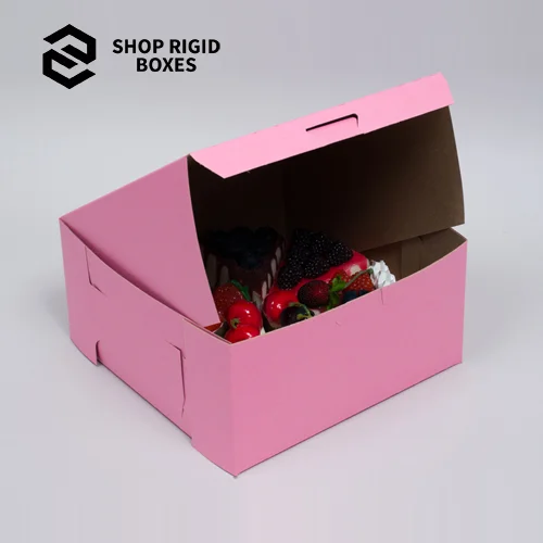 Liven up your brand reputation using Pink Bakery Box from Shop Rigid Boxes. Meant to draw the eye, these brilliant boxes are great for beauty products, fashion accessories, gifts, and subscription boxes. They come in a range of pink tones from pastel to neon pink and can be further decorated with logo, patterns and surface finish to your company image. Eco-friendly materials keep the packaging looking stylish while at the same time being friendly to the environment. Additionally, these boxes provide aesthetic design and functionality to your products by giving them the protection that they need while also providing the appeal that your product needs. For promotions during the relevant seasons, new product promotions or celebrations, our Pink Bakery Box will ensure the customers remember the feeling of opening a beautiful box. Grab the latest and better discounts on the monthly sales of bulk packs to have playful elegant packaging.