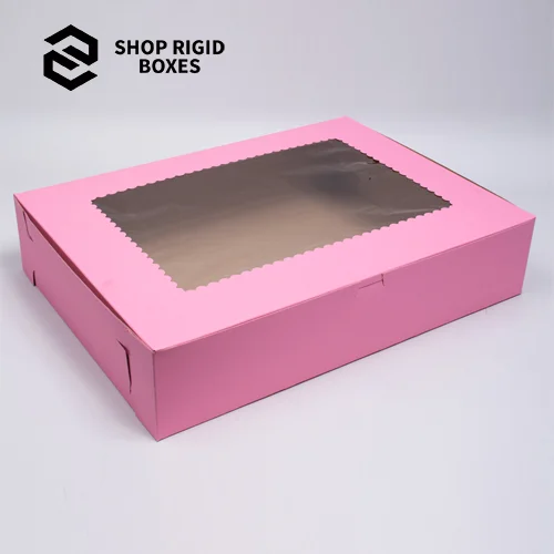 Liven up your brand reputation using Pink Cake Box from Shop Rigid Boxes. Meant to draw the eye, these brilliant boxes are great for beauty products, fashion accessories, gifts, and subscription boxes. They come in a range of pink tones from pastel to neon pink and can be further decorated with logo, patterns and surface finish to your company image. Eco-friendly materials keep the packaging looking stylish while at the same time being friendly to the environment. Additionally, these boxes provide aesthetic design and functionality to your products by giving them the protection that they need while also providing the appeal that your product needs. For promotions during the relevant seasons, new product promotions or celebrations, our Pink Cake Box will ensure the customers remember the feeling of opening a beautiful box. Grab the latest and better discounts on the monthly sales of bulk packs to have playful elegant packaging.