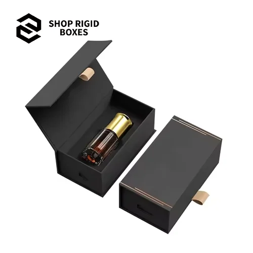 Rigid stock is the ideal material option due to its thickness and rigidity. It helps keep the luxury perfumes intact during handling or shipping.