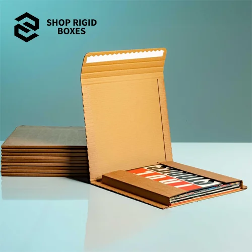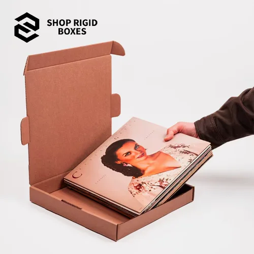 Vinyl record mailer boxes are specially designed packaging solutions to keep vinyl records safe during shipping or delivery. We know records are delicate and can easily get damaged if not handled properly or packed correctly. However, at Shop Rigid Boxes, we offer top-notch quality custom vinyl record mailer boxes. We aim to offer a durable and secure way to ship vinyl records to customers, retailers, or collectors. Our company offers various types of vinyl record boxes, including standard record boxes, LP record boxes, 7-inch, 10-inch record boxes, and 12"-inch record boxes, accommodating different record sizes & styles. In addition, our professional staff will make the right one for you, keeping in view all your specific requirements. You can get vinyl records packaging at budget-friendly prices with no minimum order quantity!